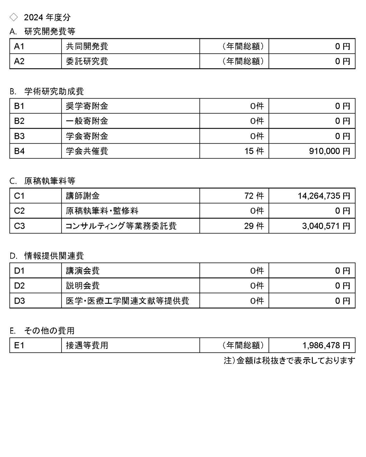 医療機関等に対する資金提供等の情報